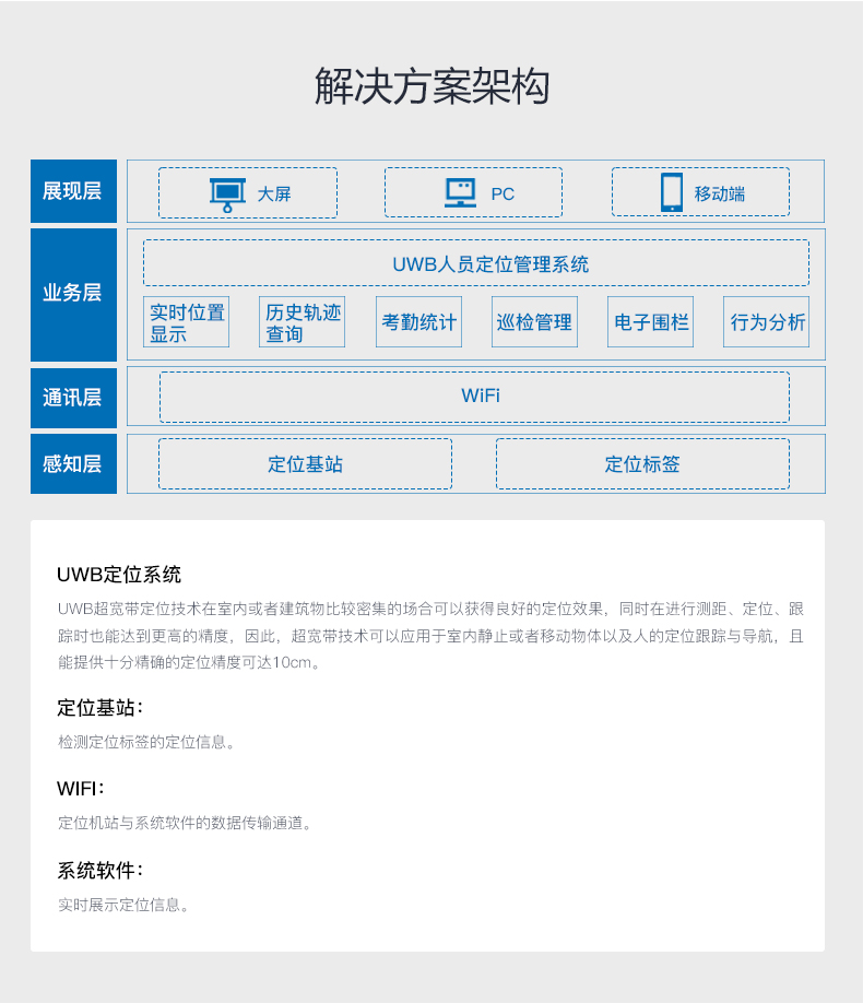 UWB超寬帶定位技術(shù)在室內(nèi)或者建筑物比較密集的場合可以獲得良好的定位效果,同時在進(jìn)行測距、定位、跟蹤時也能達(dá)到更高的精度,因此,超寬帶技術(shù)可以應(yīng)用于室內(nèi)靜止或者移動物體以及人的定位跟蹤與導(dǎo)航,且能提供十分精確的定位精度可達(dá)60cm。
